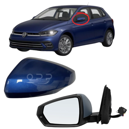 VW Polo MK6 2017-2022 Door Wing Mirror Complete Electric Painted Blue